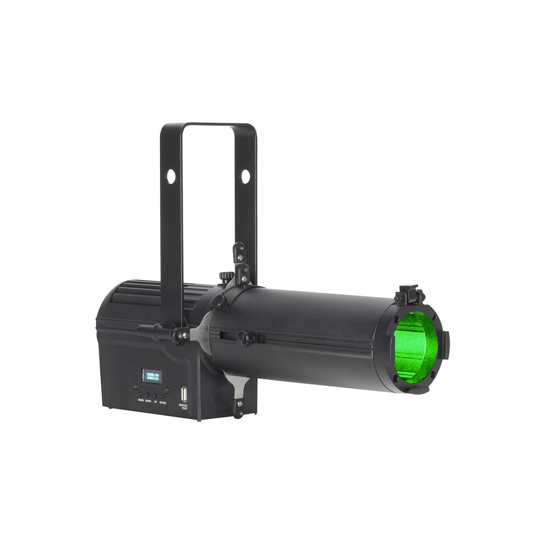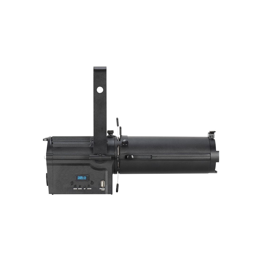 Zwei optionale Linsen (separat erhältlich) mit manuellem Zoom ermöglichen flexible Abstrahlwinkel: 15–30° oder 25–50°. Der Scheinwerfer eignet sich auch zur GOBO-Projektion und wird mit einem Halter für „E“-Size-GOBOS geliefert.