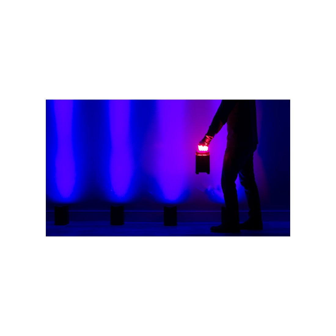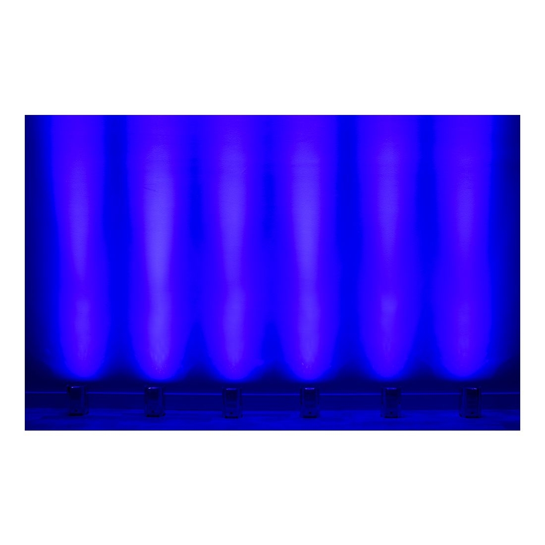Jeder Scheinwerfer verfügt über 4x10W RGBA-LEDs mit 11° Abstrahlwinkel. Dank WiFLY EXR Wireless DMX ist drahtlose Steuerung bis zu 700 m Entfernung möglich.
