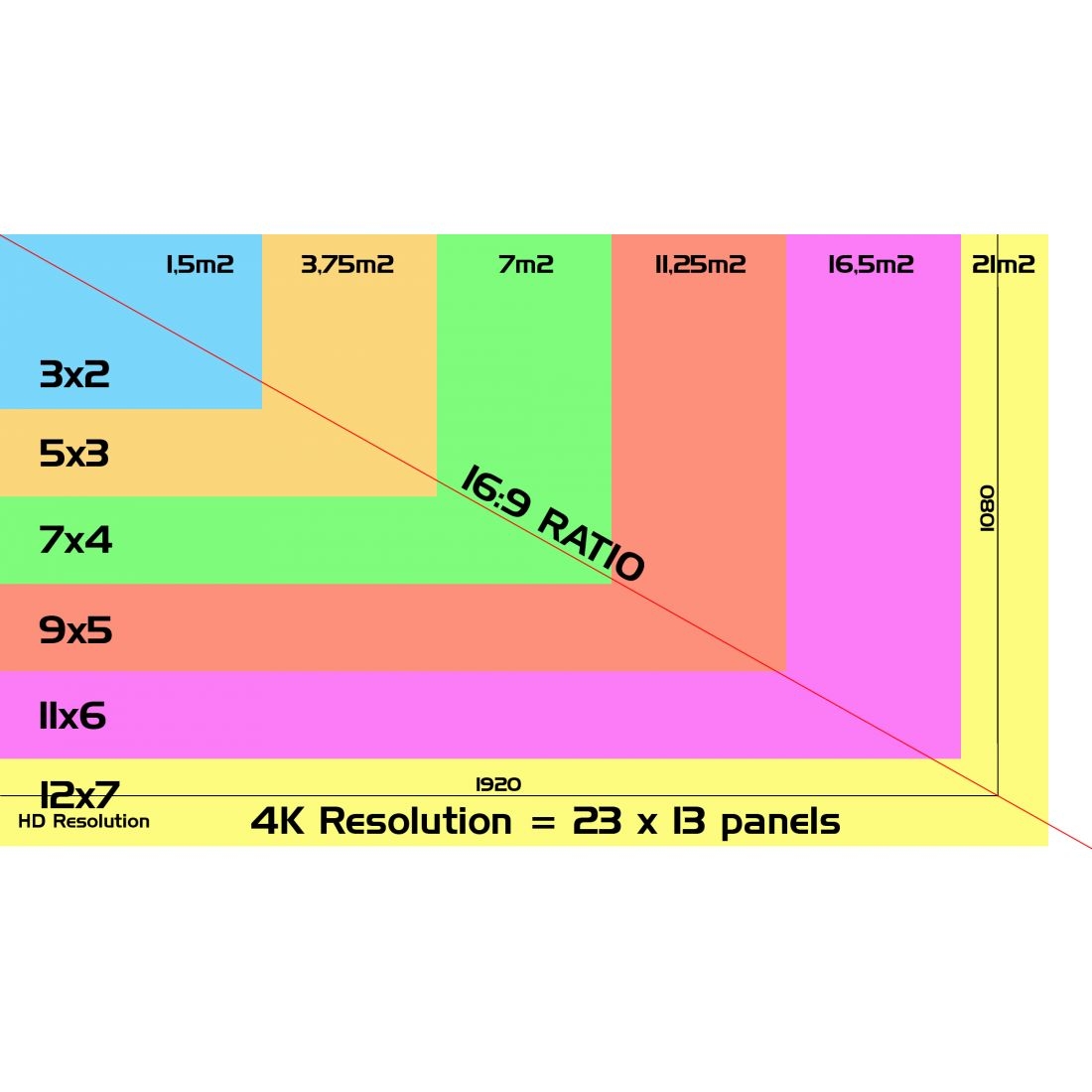 Das VS2-Panel bietet eine besonders hohe Auflösung mit einem Pixelabstand von 2,97 mm, 3-in-1 RGB SMD2121 LEDs und 1000 NITS Helligkeit. Es besitzt integrierte Locking Power- und RJ45-Anschlüsse sowie eine Novastar A5s-Empfangskarte. Bis zu 20 Panels lassen sich vertikal hängen oder stapeln.
