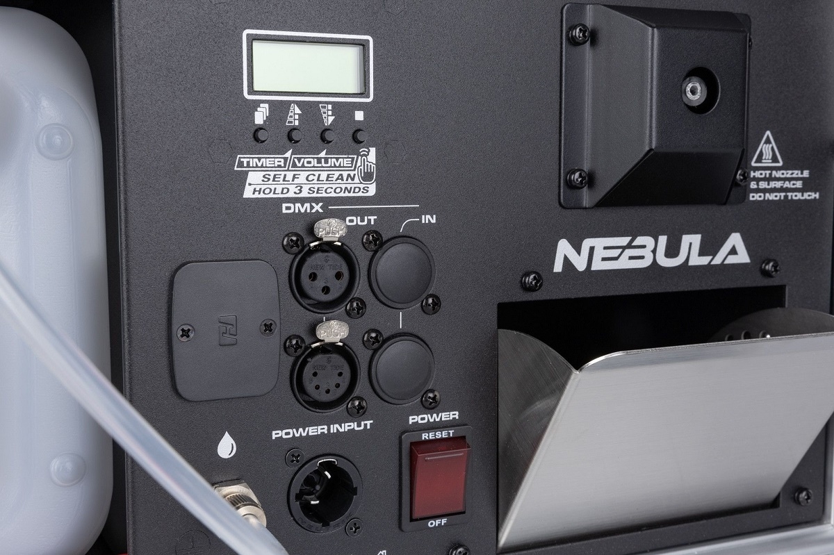 Das gut ablesbare LCD-Display mit intuitiver Tastensteuerung erleichtert die Konfiguration. Zusätzlich stehen umfangreiche Steueroptionen zur Verfügung: integrierter Timer, DMX, optionales W-DMX sowie drahtlose Steuerung über die separat erhältlichen Fernbedienungen Antari WTR-110 und W-2 Wireless Transmitter.