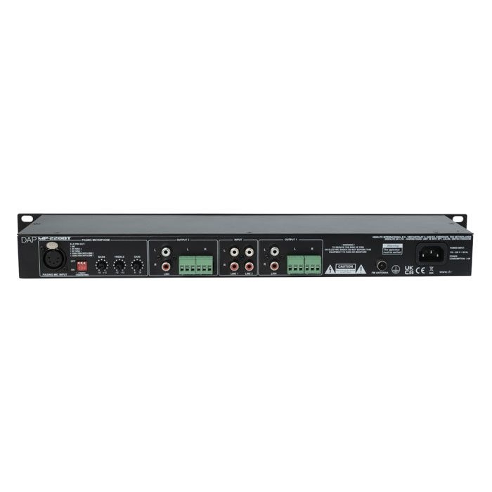 Der DAP MP-220BT ist ein flexibler Dual-Media-Player, der sich ideal für Anwendungen mit zwei separaten Audiokanälen eignet – beispielsweise in großen Einzelhandelsflächen, Einkaufszentren, Fitnessstudios oder ähnlichen Umgebungen. Ausgestattet mit FM-Radio, Bluetooth 4.2, USB-/SD-Wiedergabe für MP3-Dateien, zwei Line-Eingängen sowie einem Mikrofoneingang für Paging-Anwendungen, bietet er vielseitige Einsatzmöglichkeiten.
