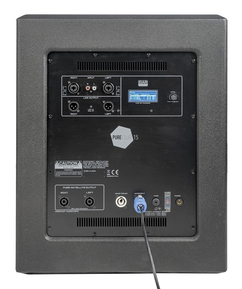 Der Pure Club 15 ist das größere Modell der Serie und bietet kraftvollen Sound mit einem 15-Zoll-Subwoofer sowie zwei 8"/1"-Satellitenlautsprechern. Die Satelliten sind mit hochwertigen Neodym-Hochtontreibern ausgestattet, die zusammen mit einem speziell entwickelten Wellenleiter eine präzise Wiedergabe bis 20 kHz ermöglichen. Dank der 8-Zoll-Mitteltöner liefert das System eine besonders natürliche und detailreiche Klangwiedergabe.