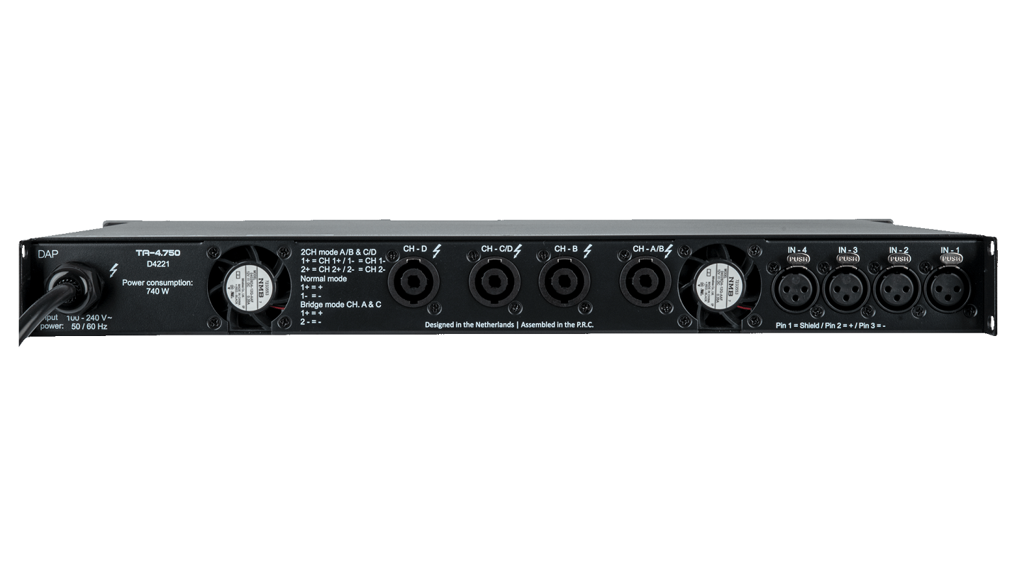 Maximale Kontrolle auf kleinstem Raum – der DAP TA-4.750: Leistungsstark, kompakt und intelligent: Der DAP TA-4.750 vereint moderne DSP-Technologie und hohe Ausgangsleistung in einem ultraflachen 1-HE-Rackgehäuse. Mit 4 x 750 Watt an 4 Ohm liefert dieser 4-Kanal-Verstärker genug Power für professionelle Touring- und Festinstallationen. Selbst 2-Ohm-Lasten bringt er mühelos unter Kontrolle, und im Bridge-Modus entfesselt er zusätzliche Leistungsreserven – ideal für besonders anspruchsvolle Setups.