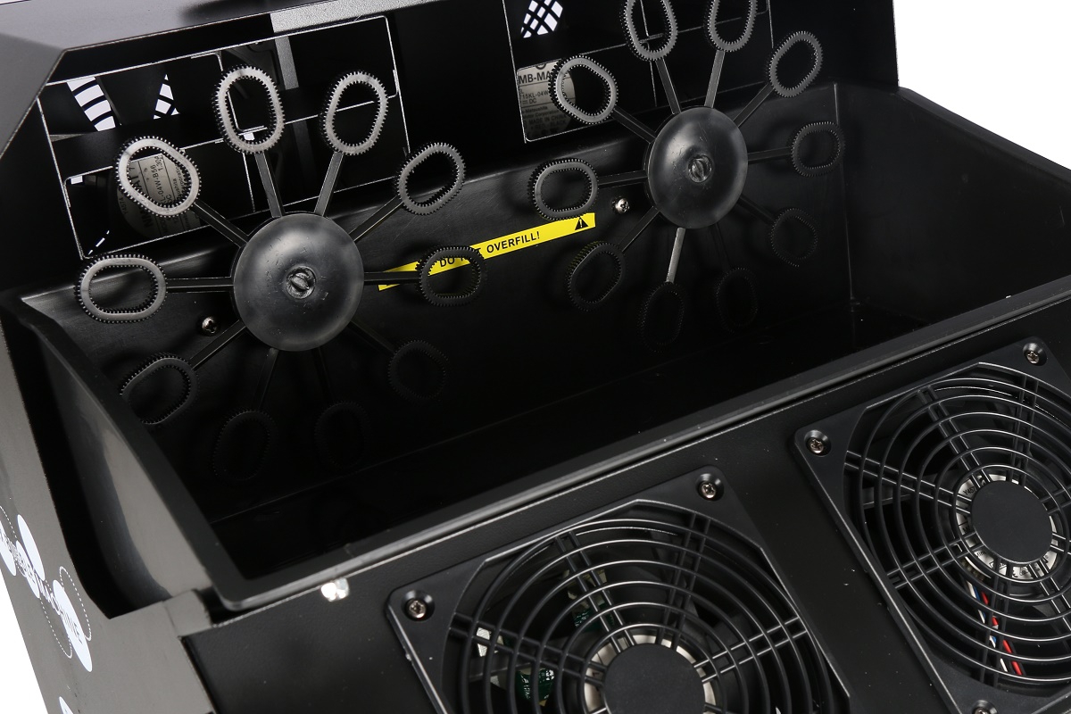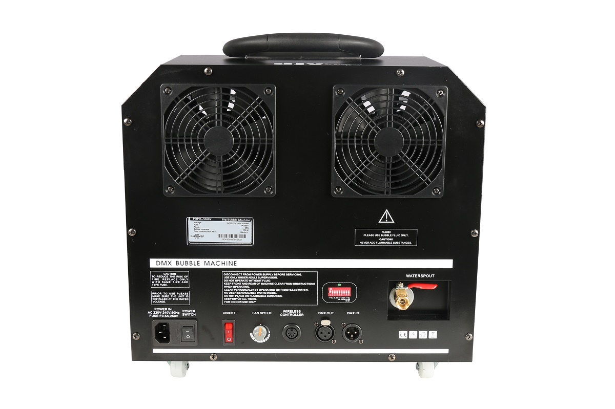 Die P-1000Y aus dem Hause DJ Power hat zwei Stäbe zur Blasenerzeugung und Lüftern erzeugt enorme Mengen an großen Blasen und erzeugt gleichzeitig zusätzlichen Auftrieb, der die Blasen hoch in die Luft steigen lässt. Der Kunststofftank verhindert zudem Korrosion und Lecks. Der am Gehäuse angebrachte Griff und die eingebaute Räder erleichtern außerdem den Transport.