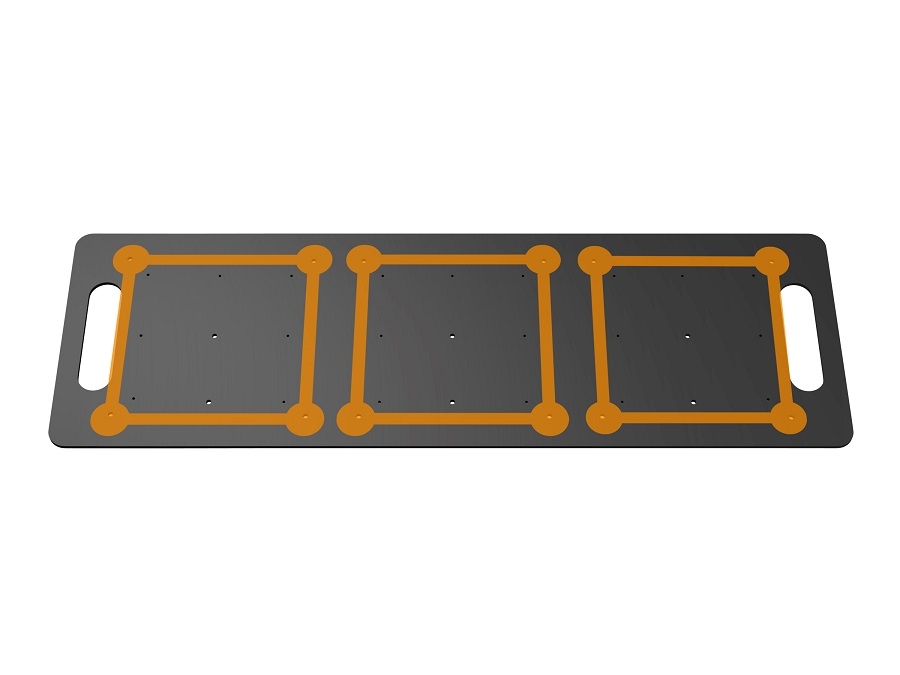 Eine weitere gute Idee aus dem Hause Global Truss: Die 19,3kg schwere Bodenplatte die für das F24 Traversensystem und auch für die F31, F32, F33 und F34 Traversen gedacht ist bietet eine vielzahl an Möglichkeiten diese einzusetzen. Die Bodenplatte wird mit der Anzahl an Halbkonussverbindern verwendet die für die jeweilige Traverse nötig sind. Durch die zahlreichen Borhrungen kann die Traverse an verschiedenen Stellen der Bodenplatte befestigt werden, und die Bodenplatte dann noch zusätzlich beschwert werden wenn das nötig ist.
