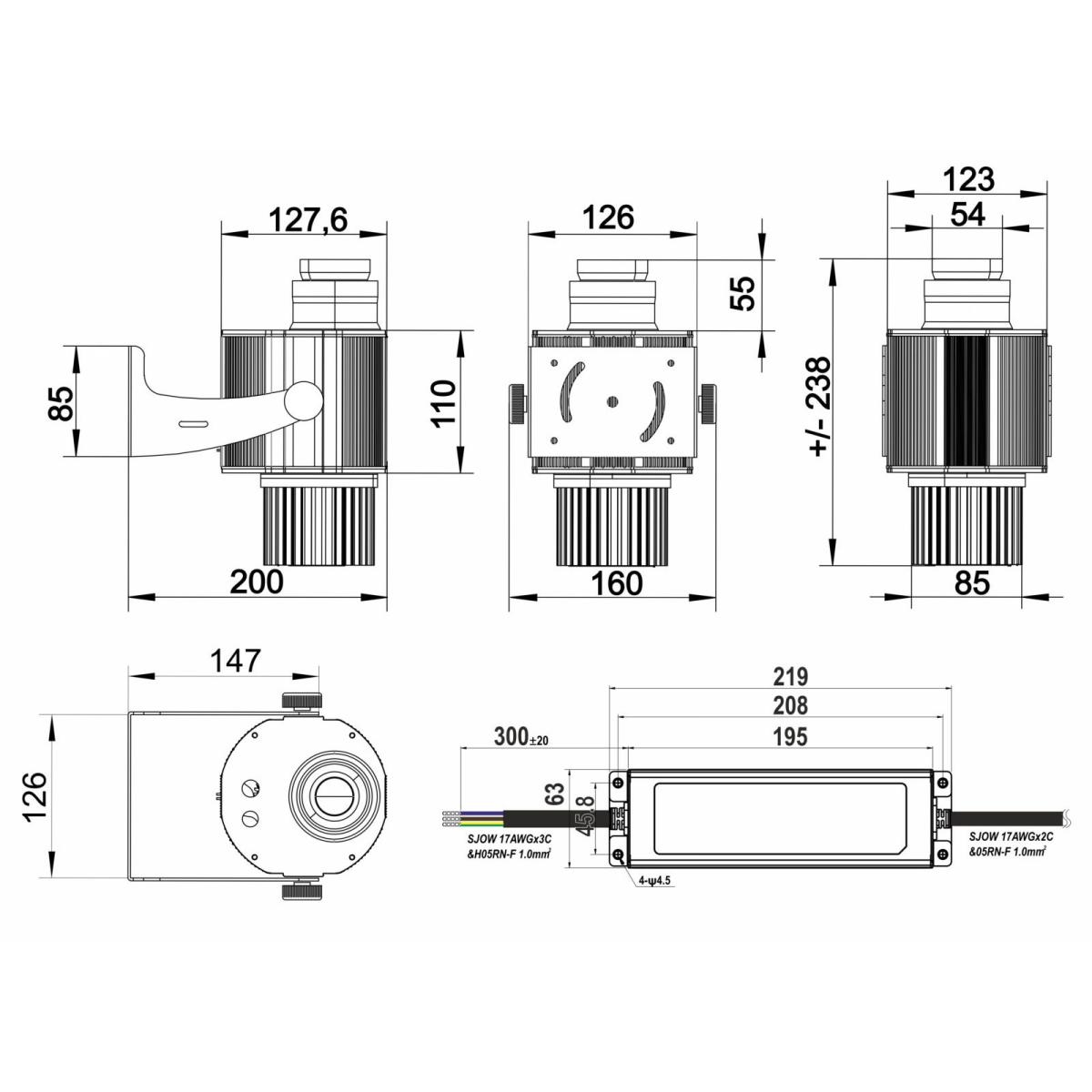 ⦁ Lieferung inkl. externe IP65 150W Stromversorgung (Mean Well) und einem Glasgobo HOT SALE