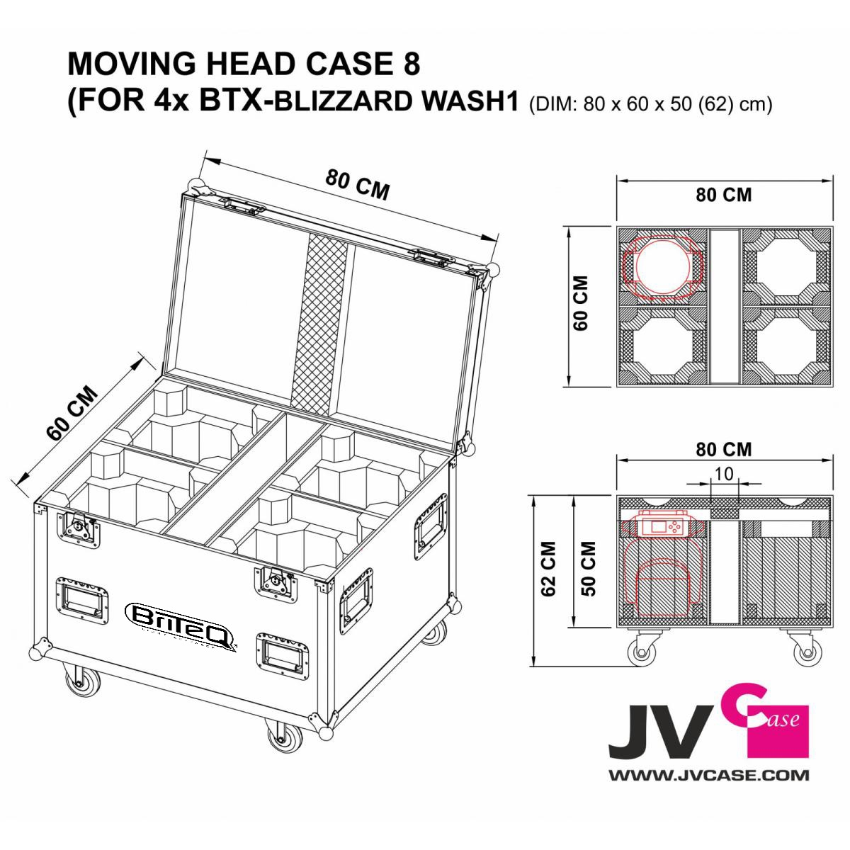 Dieses robuste Flightcase von BRITEQ ist speziell für den sicheren Transport von bis zu vier BTX-BLIZZARD WASH1 Moving Heads konzipiert.