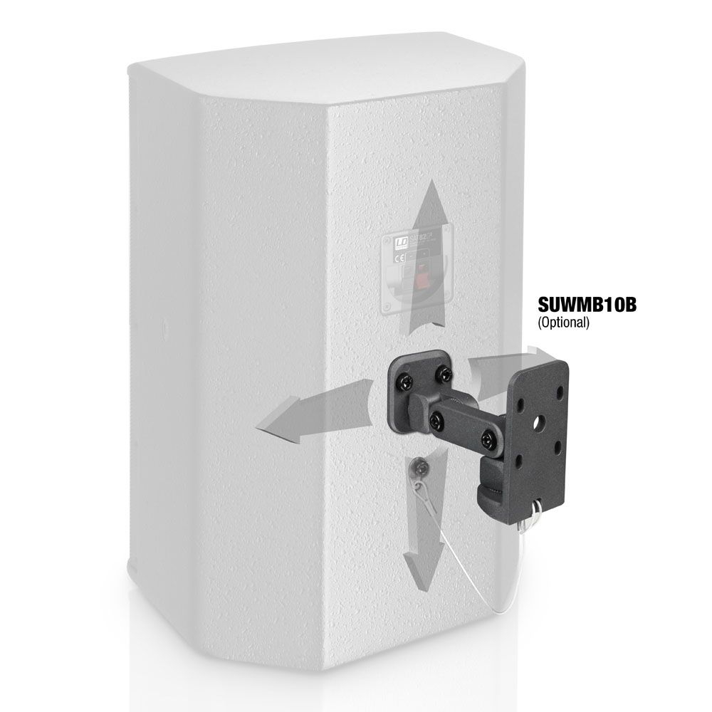 Das stabile Gehäuse aus 12mm starkem MDF ist mit widerstandsfähiger Strukturfarbe lackiert und in schwarz oder weiß erhältlich. Die Ausstattung mit M6-Flugpunkten und ein mitgelieferter Montagebügel bieten zahlreiche Möglichkeiten zur Befestigung, darüberhinaus wird eine universelle Gelenkhalterung angeboten. Zum Anschluß besitzt der SAT82G2 Federklemmen.