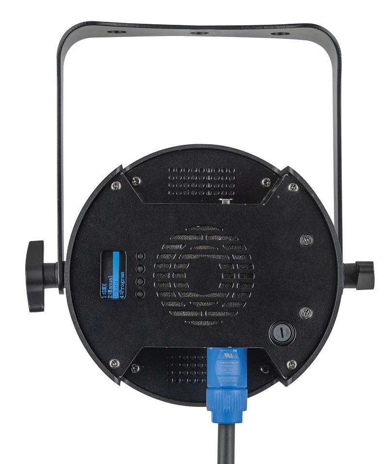 - DMX-Anschluss: XLR 3P Eingang/Ausgang