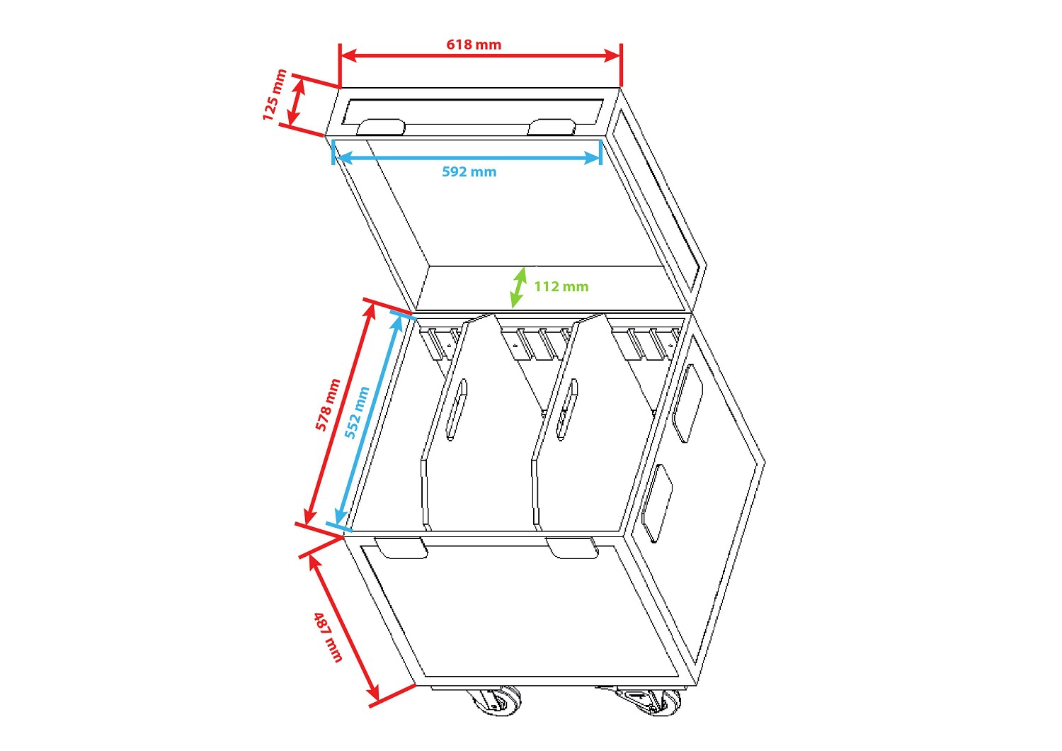 - Innenmaße: 580 x 580 x 530 mm